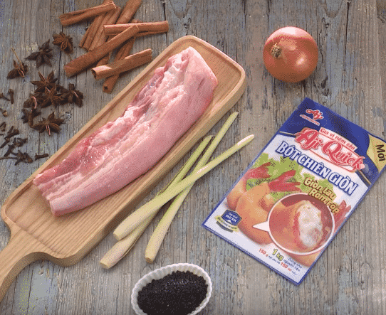 Gia vị: muối, mật ong, dầu ăn, Hạt nêm Aji-ngon® (Heo), Nước tương “Phú Sĩ”, Xốt Mayonnaise Aji-mayo®