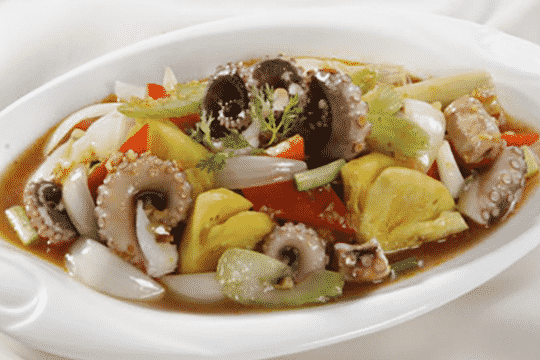 Món xào mà có lẽ ai cũng không nên bỏ qua chính là món Bạch tuộc xào chua cay này đây. Kết hợp cùng thơm, hành tây, cà chua cùng vị xốt xào đặc biệt được sáng chế từ đầu bếp của Món Ngon Mỗi Ngày, phải thử đó nha!