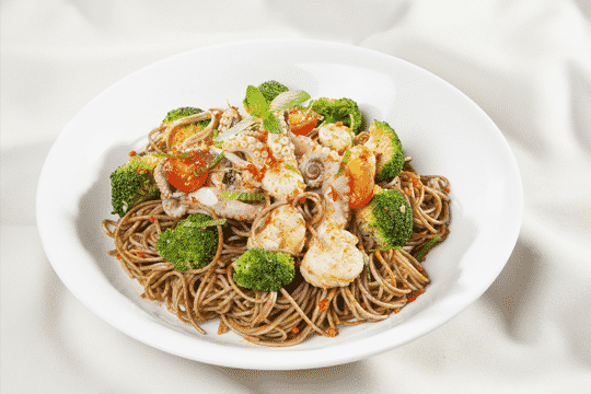 Một phương pháp làm mì soba mới với hương vị mới hơn, vị cay nhẹ quyện lẫn bạch tuộc sừn sựt, giòn ngọt vừa chín tới, thấm vị tỏi phi thơm lừng khi ăn kèm càng khiến món ăn thêm đậm đà. Hãy thử ngay món ăn tuyệt ngon mang hương vị Nhật Bản này vì hứa hẹn sẽ “đưa cơm” lắm đấy nha!