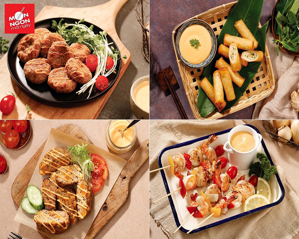 - Bước 4: Trộn 2M Xốt Mayonnaise Aji-mayo® với 1M tương ớt và 1/2M mè rang giã, ăn kèm với chả.
