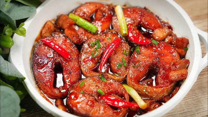 - Cá basa kho tộ: Cá basa có độ béo nhẹ, thịt mềm và thơm, rất phù hợp để kho với nước mắm ngon, tiêu và ớt tươi. Khi được kho trong nồi đất, cá không chỉ thấm đều gia vị mà còn toát lên mùi thơm đặc trưng, nước kho sánh đậm đà – chỉ cần thêm bát cơm trắng là đủ “tốn cơm” cả nhà.