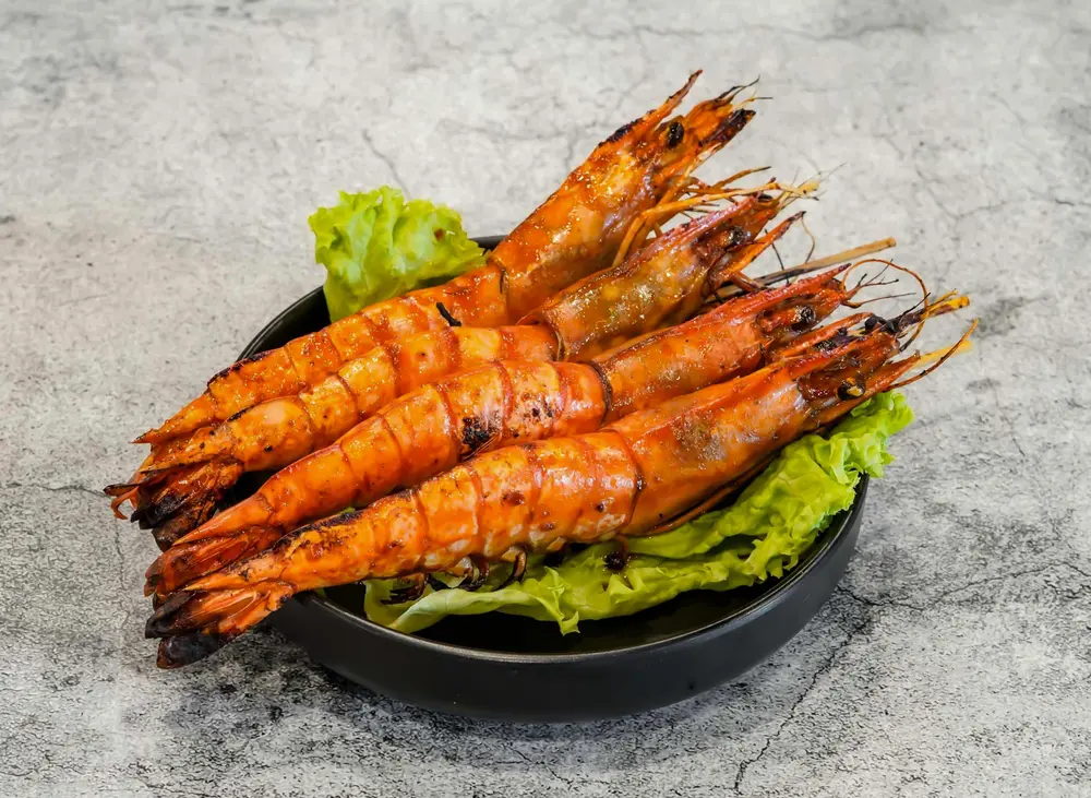 Tôm tươi ướp với bơ tan chảy, tỏi băm và chút tiêu cho đậm vị. Nướng đến khi vỏ tôm hơi cháy xém, thịt bên trong chín đều, thơm ngọt là đạt. Vị béo thơm của bơ hòa quyện cùng mùi tỏi khiến món ăn vô cùng hấp dẫn. Đây là một trong các món nướng dễ làm nhưng luôn “cháy hàng” trong các buổi tiệc.
