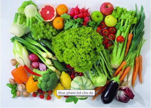 Các loại rau xanh, củ, trái cây chính là nguồn thực phẩm tốt cho da cần có trong bữa ăn hàng ngày