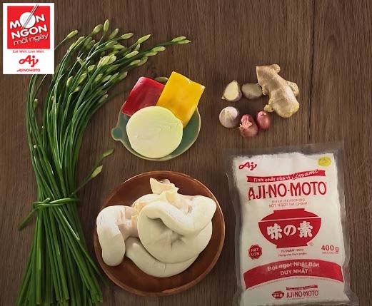 - Gia vị: Đường, tiêu, dầu ăn, rượu trắng, dầu hào, Hạt nêm Aji-ngon® Heo, Nước tương “Phú Sĩ”, Bột ngọt AJI-NO-MOTO®.