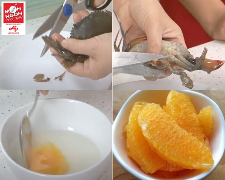 - Cua lột cắt bỏ phổi, yếm, miệng, mắt, đầu chân, rửa sạch, để ráo nước.