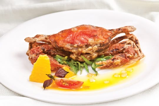 Cua lột xốt cam là món ăn mang hương vị chua ngọt hài hoà, thơm mùi cam đặc trưng, phù hợp chiêu đãi vào những dịp tiệc, lễ.