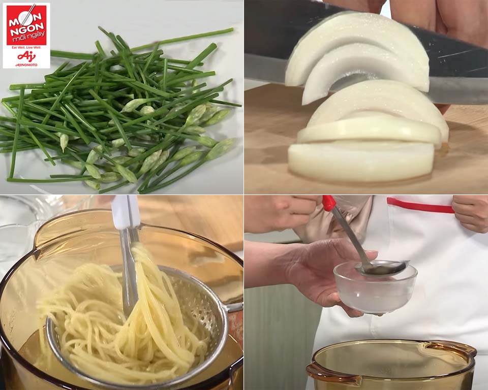 Chan…chan… từ những nguyên liệu dư ít ỏi tưởng chừng như chẳng thể làm đủ món gì, mà Món Ngon Mỗi Ngày đã cùng Mẹ biến tấu thành một món xào ngon tuyệt vời rồi đây nè! Mì spaghetti mà ăn kèm với Súp hành tây kiểu pháp thì bữa cơm nhà mình cứ phải gọi là chẳng khác gì nhà hàng nước ngoài 5 sao “xịn xò” đâu nha!