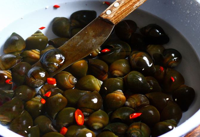 Chất cay trong ớt sẽ làm ốc bươu nhả sạch bùn – Ảnh: vnexpress