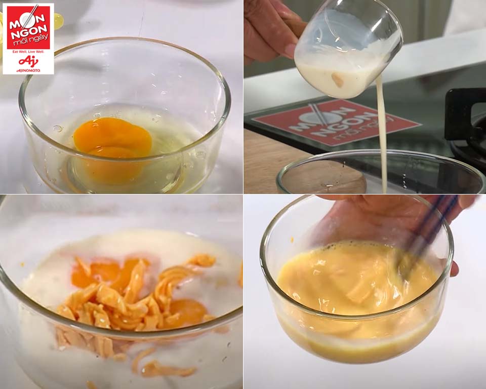 • Đánh tan đều hỗn hợp trứng.
