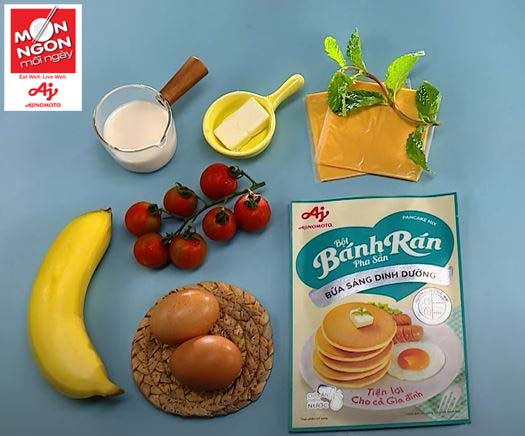 Pancake mềm thơm bơ; trứng khuấy xốp nhẹ thêm chút béo ngậy mặn mặn của phô mai Cheddar thêm phần bắt miệng. Món bánh mới ngon mà cách làm thì quá trời là nhanh gọn, tiện dụng thế này thì nhà mình cứ nên để dành sẵn vài gói Bột bánh rán pha sẵn bữa sáng dinh dưỡng, áp dụng thêm công thức của Món Ngon Mỗi Ngày thay đổi hàng ngày là không lo bị ngán luôn nè!