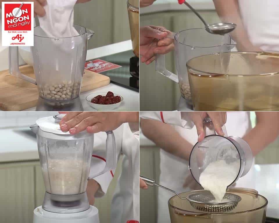 • Lọc lấy phần nước cốt cho vào nồi nước dùng gà, bỏ bã.