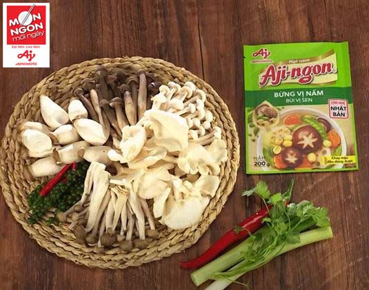 - Gia vị: Đường, dầu ăn, tương ớt, Nước tương “Phú Sĩ”, Hạt nêm Aji-ngon® Nấm, Bột ngọt AJI-NO-MOTO®