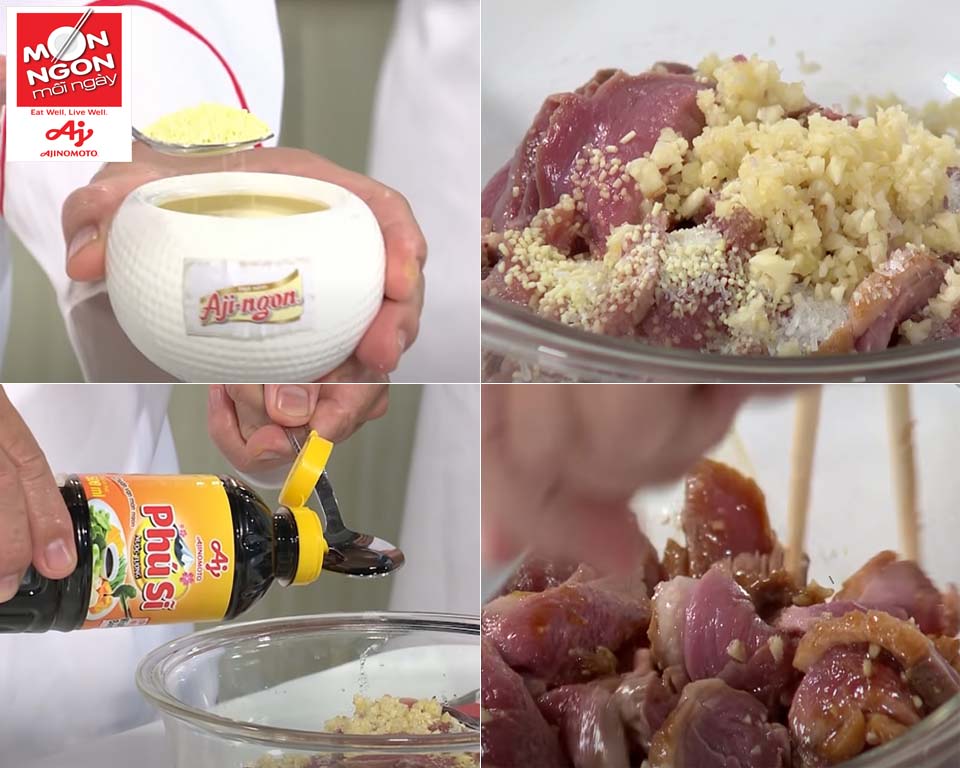 - Gia vị: Dầu ăn, dầu hào, đường, Nước tương “Phú Sĩ”, Hạt nêm Aji-ngon® Gà, Bột ngọt AJI-NO-MOTO®