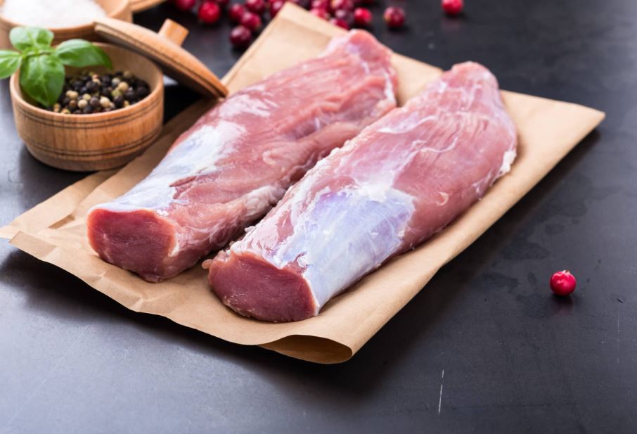 🐷 Thịt thăn: là miếng thịt dài duy nhất, có kích thước hẹp và được cắt từ bắp thịt nằm ở phía trước, chạy dọc cột sống và gần dưới phía chân sau của con heo; màu đỏ sẫm và đặc biệt không có xương. Vì phần thịt này chỉ có tác dụng chính là để giữ dáng thẳng của cơ thể của heo nên khi ăn khá mềm. – Ảnh: sirinfarm