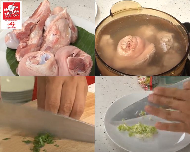 - Dùng giò heo, sườn heo nấu nước dùng, cho thêm hành tím nướng nguyên củ.