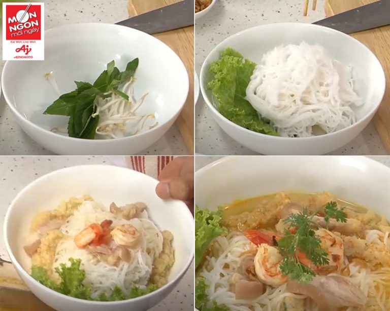 - Dùng chung giá trụng, salad, rau sống và bún.