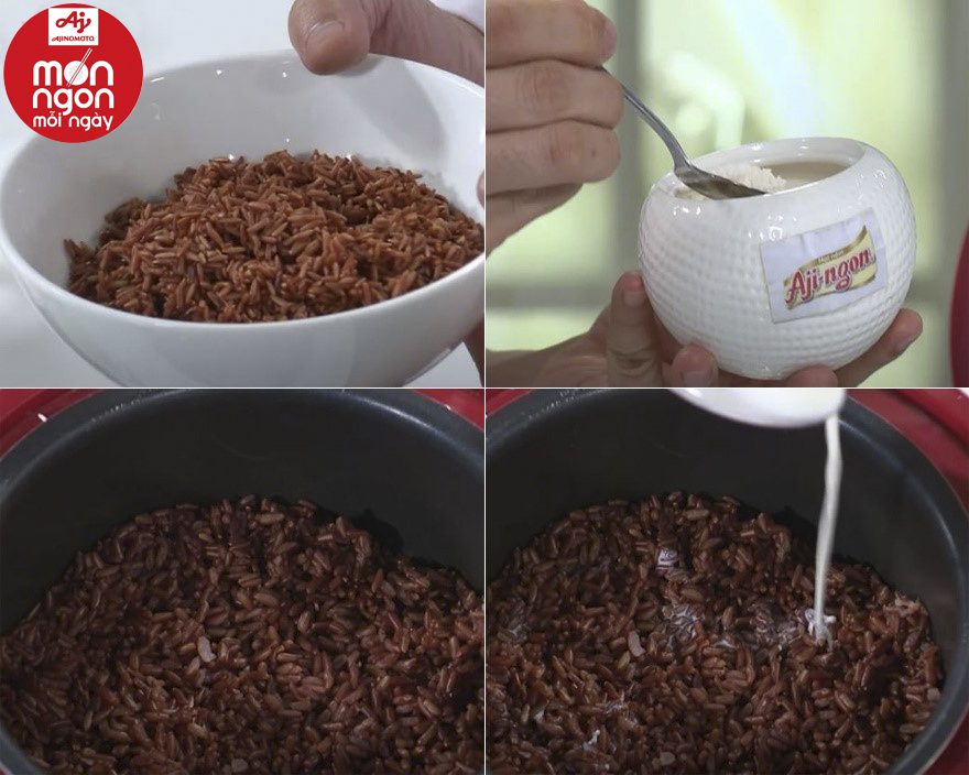 - Khi cơm chuyển sang chế độ hâm cho 1/2 chén sữa tươi vào.