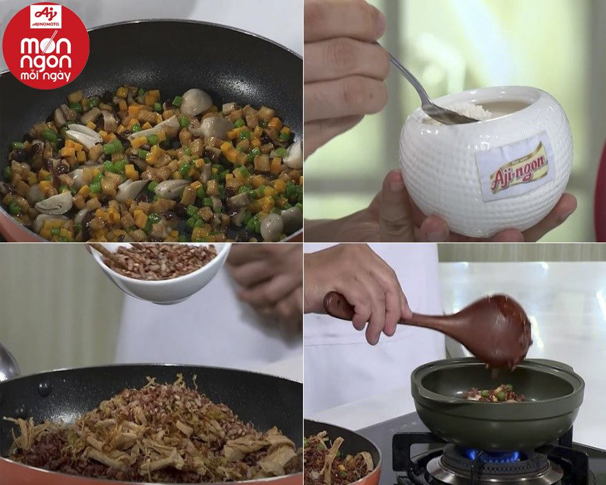 - Múc cơm ra thố đặt lên bếp đun nóng thêm 5 phút.