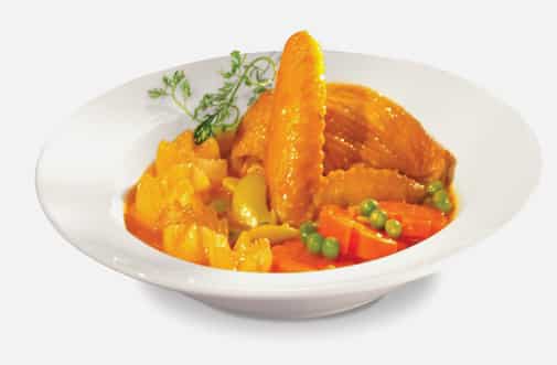 –       Đun nóng dầu, cho gà vào chiên vàng rồi vớt ra để ráo dầu