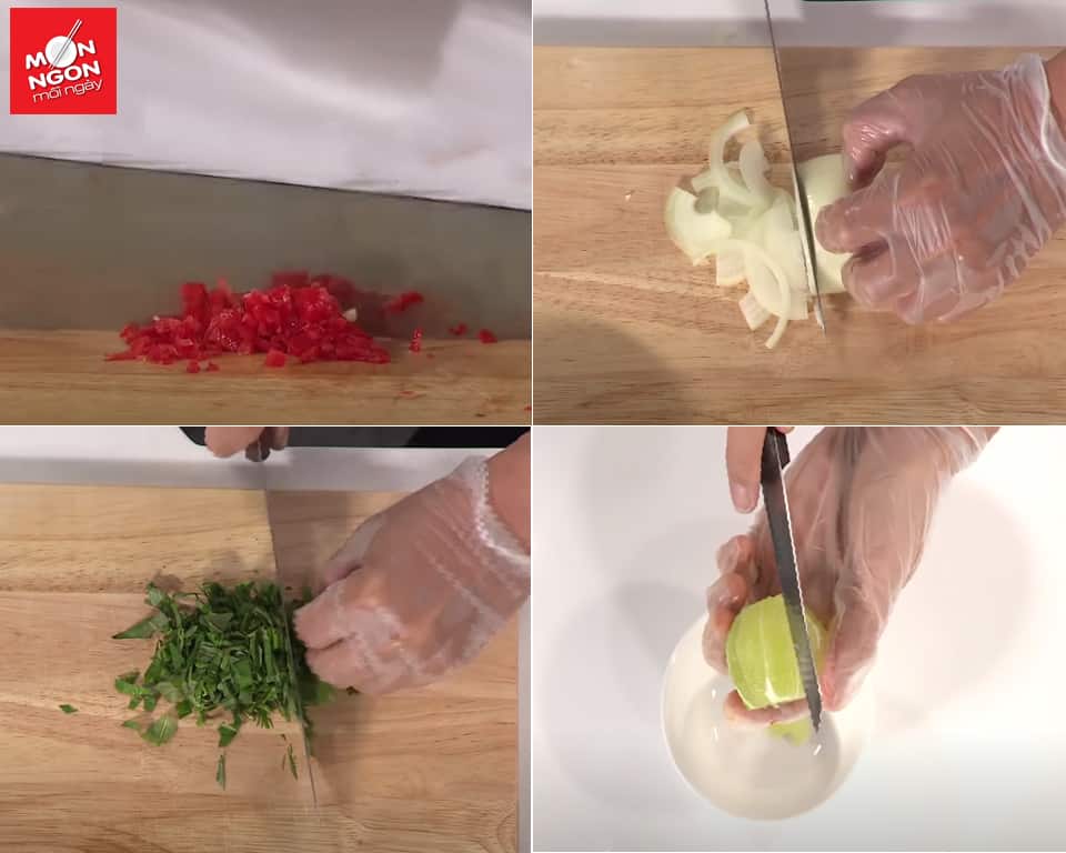 • Thêm 2M tỏi băm, 2M ớt băm, 2M tép chanh.