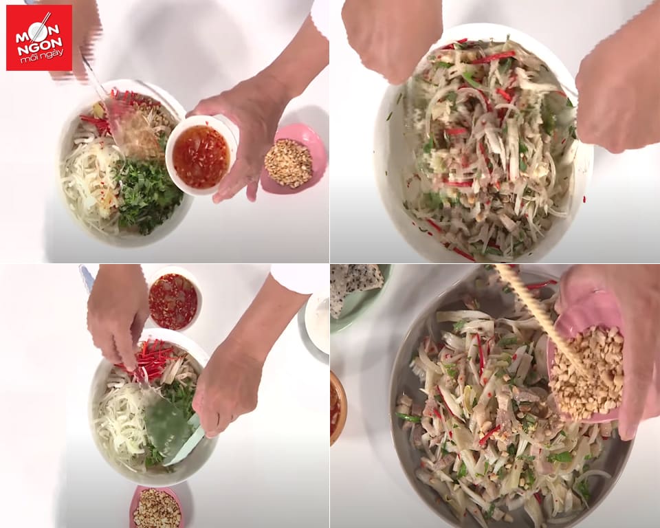 • Cho gỏi ra dĩa, rắc đậu phộng lên trên và nước mắm pha.