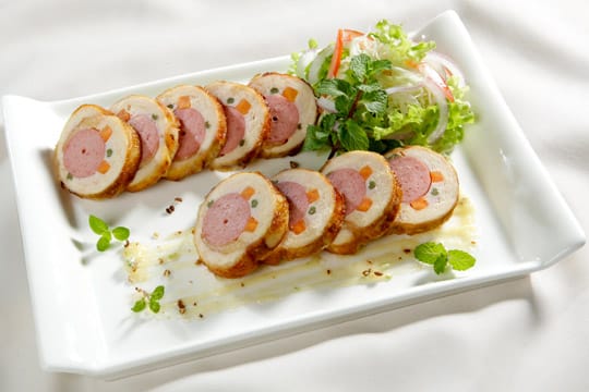 5. Gà cuộn xúc xích khôXúc xích khô (Salami) là một nguyên liệu nổi tiếng trong các món Tây với vị thơm từ thịt lên men cùng các gia vị đặc trưng khác.; được đầu bếp của Món Ngon Mỗi Ngày biến tấu thêm một chút hương vị Việt nhưng vẫn không mất đi vị “Món Tây” vốn có – Cách làm Gà cuộn xúc xích khô |