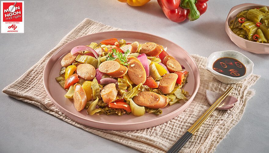 3. Xúc xích dưa cảiXúc xích xào nở bung đẹp mắt, rau củ vừa chín tới giữ được độ giòn ngọt, dưa cải vị vừa ăn, hòa lẫn mùi xông khói của xúc xích. Món xào này không chỉ người lớn mà cả trẻ em cũng phải mê. – Cách làm Xúc xích dưa cải |
