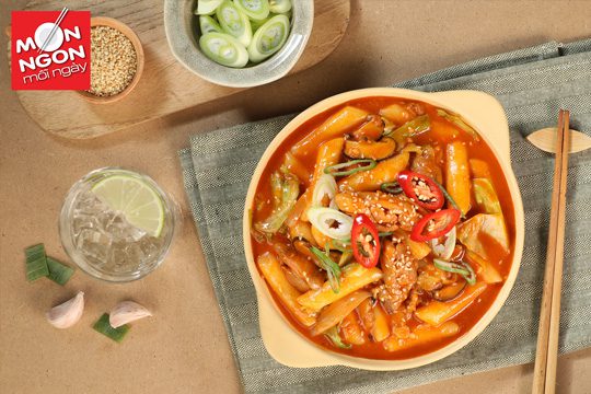 8. Bánh gạo xào cayMón bánh truyền thống Hàn Quốc thật dễ làm và đúng vị với công thức đơn giản này. Bánh gạo thấm vị, cay thơm tương ớt, nay có thêm thịt gà mềm tăng độ ngon cho món ăn. Một món thích hợp để ăn vặt hoặc đãi bạn bè trong những lúc họp mặt hàn huyên. Cái dẻo ngon của bánh gạo còn thu hút cả mấy nhóc và các cô, cậu bé tuổi teen nhà mình nữa đó! – Cách làm Bánh gạo xào cay |