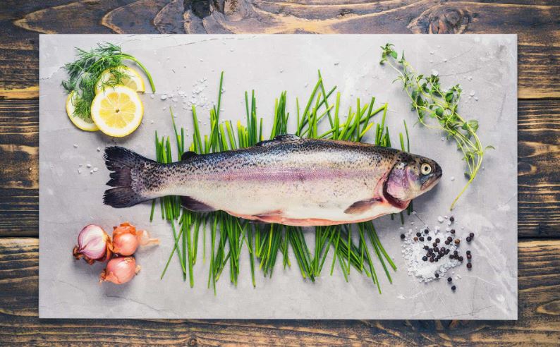 Cùng họ hàng với cá hồi, cá hồi cầu vồng là một trong những loại cá tốt nhất có chứa hàm lượng acid béo omega-3, protein và một số vitamin B, canxi, magie và niacin rất cao. Nếu không thích vị tanh của cá hồi hoặc cá ngừ, thì mọi người có thể chọn cá hồi cầu vồng thay thế các bữa ăn bổ sung Omega-3 trong thực đơn hàng ngày. – Ảnh: freshfishdaily