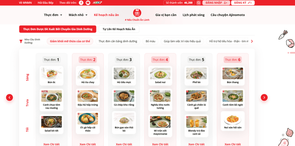 Ngoài việc tự lên kế hoạch nấu ăn, website phiên bản mới còn cung cấp cho các khán giả những thực đơn theo từng nhóm dinh dưỡng khác nhau dựa trên gợi ý của chuyên gia dinh dưỡng. Với những gợi ý và lời khuyên của chuyên gia, các bạn có thể cải thiện bữa ăn gia đình mình, giúp các món ăn hằng ngày thêm dinh dưỡng.